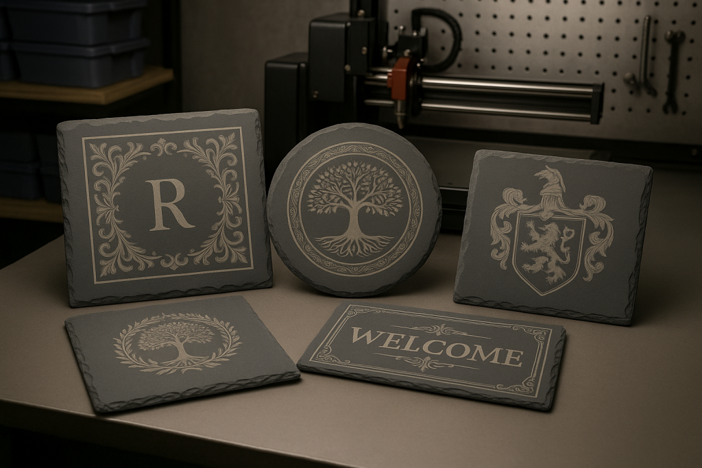 Chaque gravure est réalisée avec soin, garantissant des détails précis et une finition élégante sur chaque ardoise.